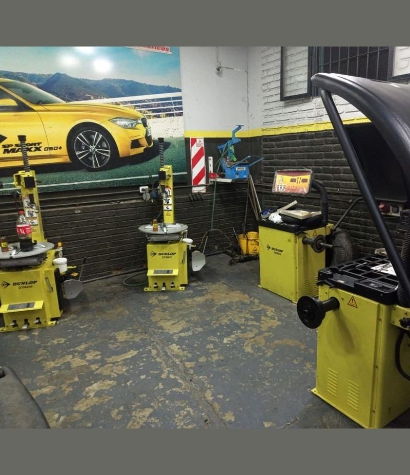 Instalación completa de desarmadoras de neumáticos, balanceadoras y elevador dos columnas en centro de neumaticos oficial Dunlop ubicado en Lujan y Moreno (provincia de BS AS)