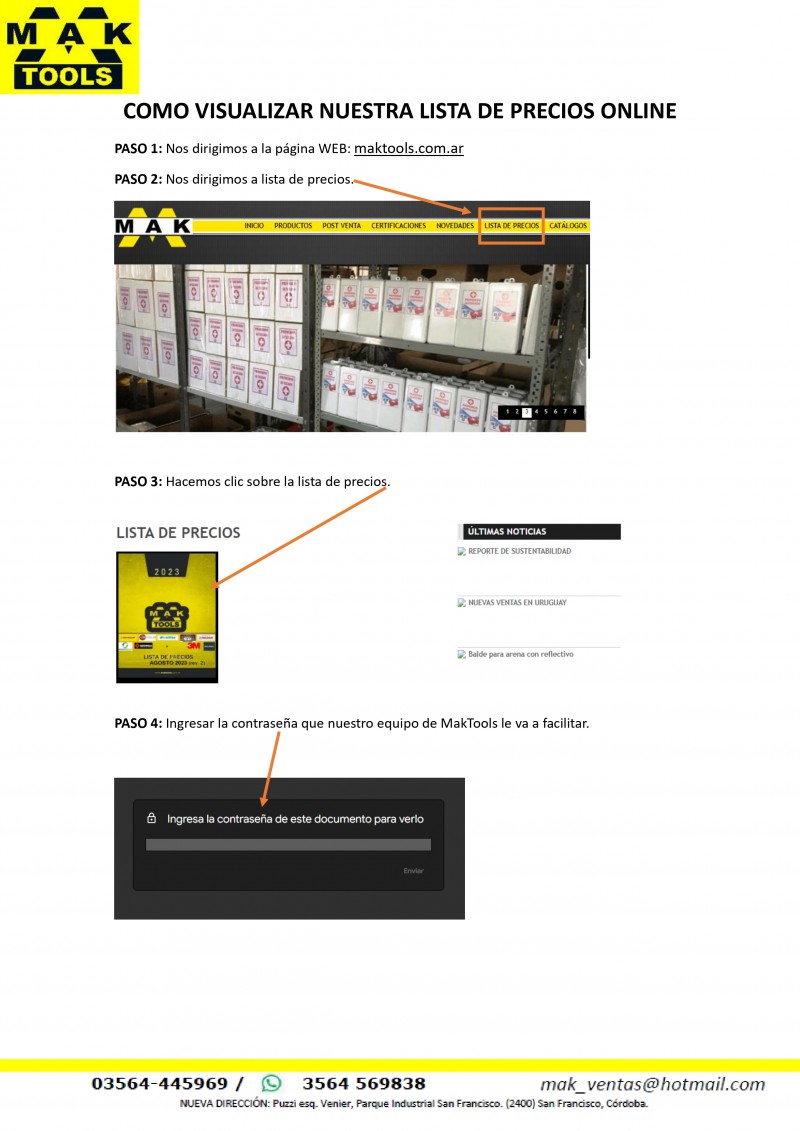 INSTRUCTIVO DE COMO INGRESAR A NUESTRA LISTA DE PRECIOS. CONSULTENOS LA CLAVE POR WHATSAPP  3564-569838 ...
