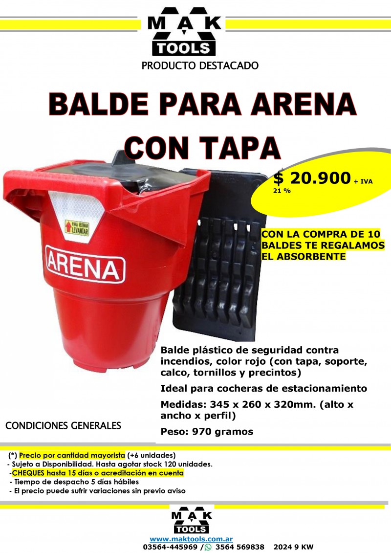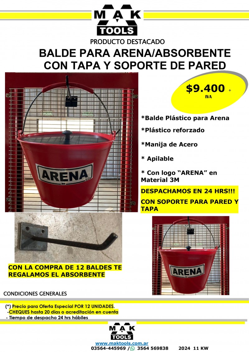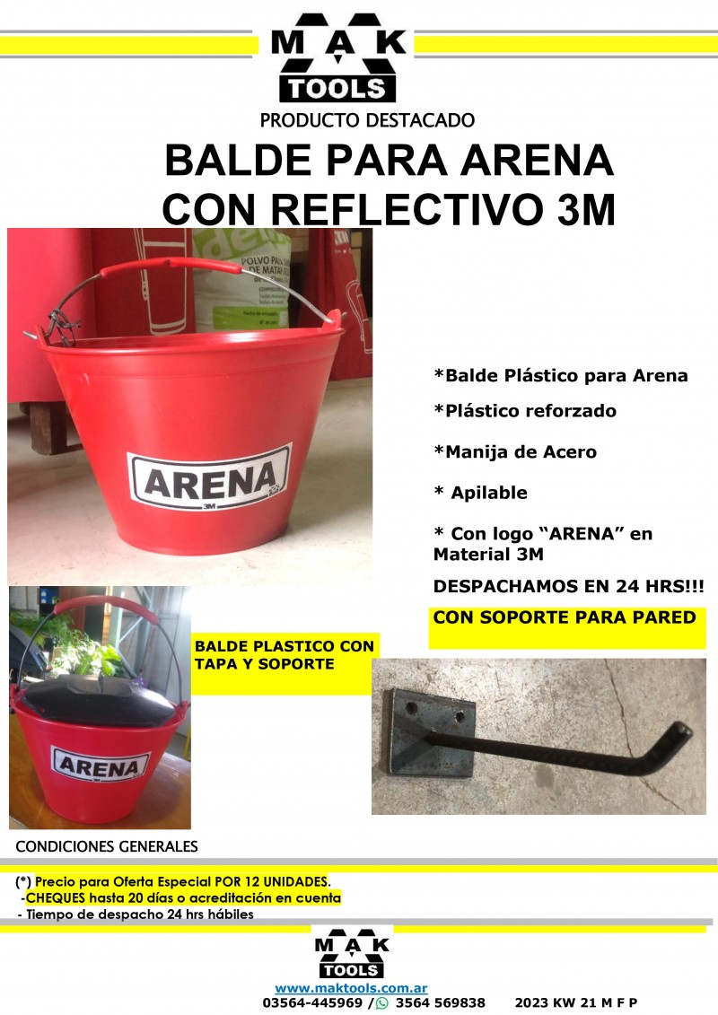 Promo Balde plastico para arena con reflectivo $1799+IVA Con soporte para pared $3000 Balde plastico con tapa y soporte $5000 Precio para oferta especial POR 12 UNIDADES 05/09/2023 ...