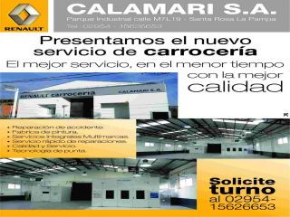 La Empresa CALAMARI S.A. Concesionaria Oficial Renault en Santa Rosa (La Pampa ) junto con Renault Argentina confiaron en ns. empresa, ns. servicio y ns. respaldo para instalar una Cabina de Pintura y Equipo para Taller de Ultima Generación en Consumos, Diseños y Eficiencia.